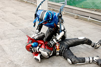 ワームを倒すガタック、カブト。そのガタック、カブトを完全に倒さないホッパーライダー。