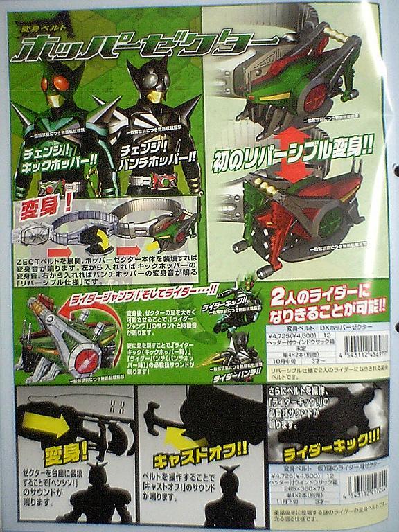 変身ベルト DXホッパーゼクター¥4725(¥4500)単4*2本10月中旬発売。