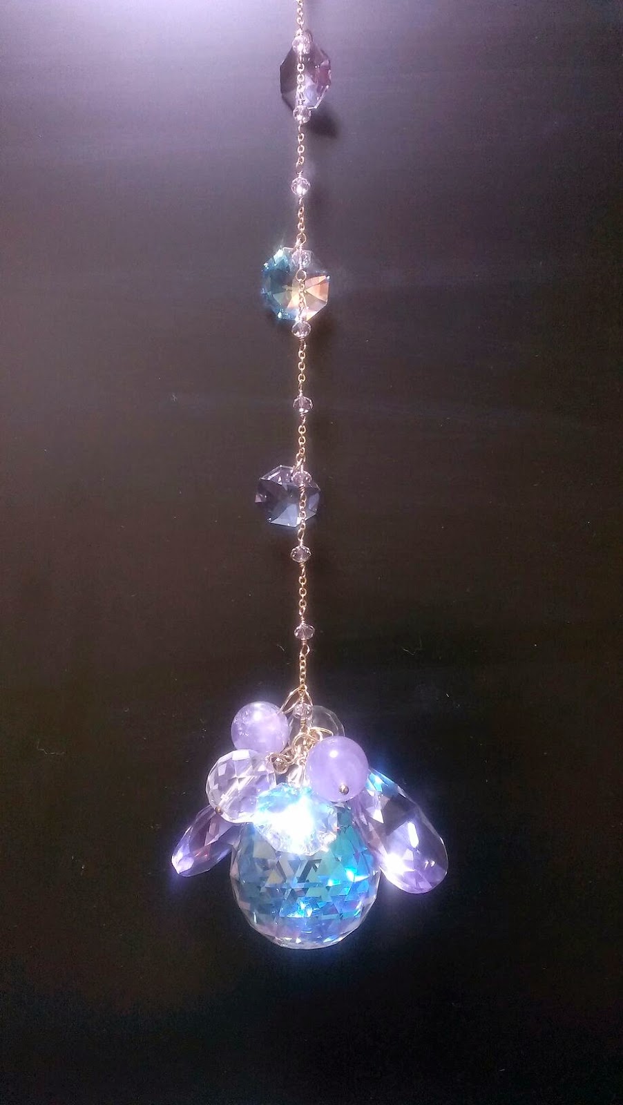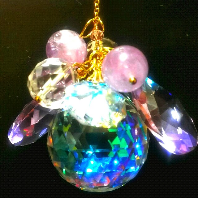 水晶もぶら下がっていますが、大きなのはスワロフスキーのオーロラカラーの為、