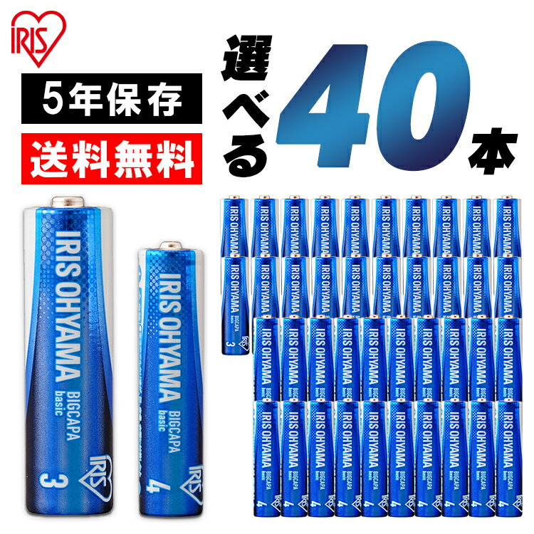 乾電池 単3 単三 単4 単四 電池 BIGCAPA basic 【選べるセット品】 単3×40本or単4×40本or単3×24本+単4×20本 3LR6Bb/10P 4LR03Bb/10P 3LR6Bb/12P 5年保存 アルカリ乾電池 電池 アイリスオーヤマ【代金引換不可・日時指定不可】 【メール便】 [a18]楽天市場${EVENT_LABEL_01_TEXT}