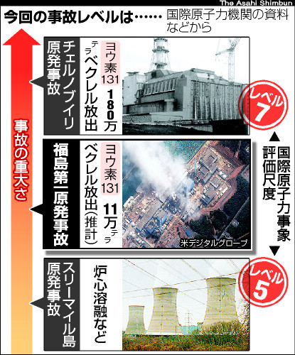 福島第一原発事故、スリーマイル超えレベル6相当に