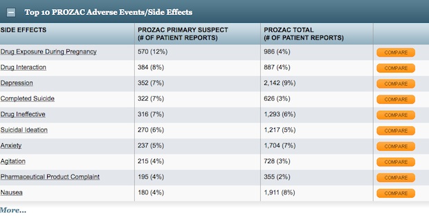 adverse effects with prozac