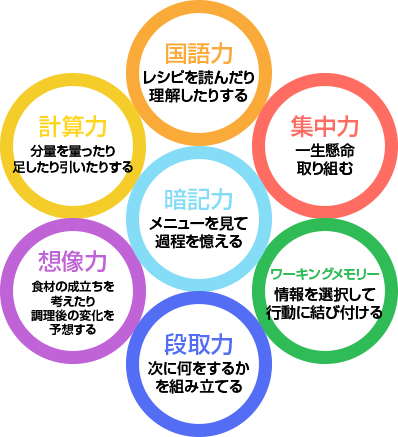お料理することは、「学習面」と「生きていく力」の両方が自然に、楽しみながら身につけることができる、新しい教育の形です。