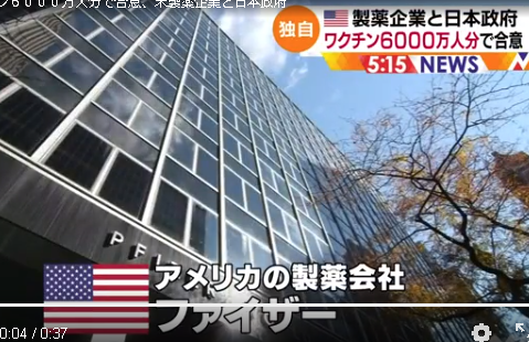 アメリカの「ファイザー」が開発しているワクチンが完成し、承認された場合6000万人分が日本向けに供給される