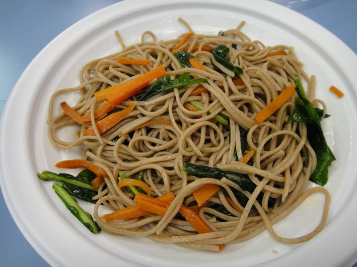 レシピは ルッコラと にんじんと 和そばを 混ぜ合わせて