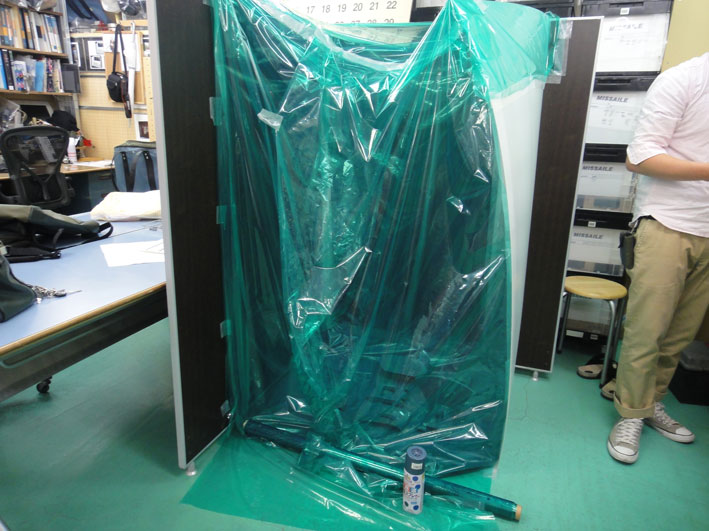 簡易ブース なのです この中で スタッフ Y は フラフラ