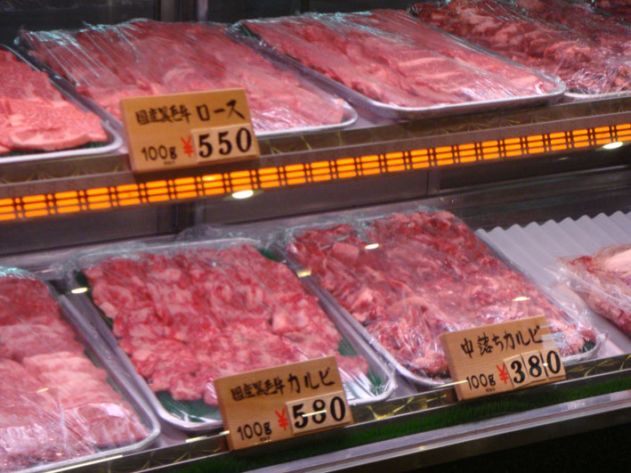 ほんとに 市場みたいに ほんちゃんは 肉が ならんでました