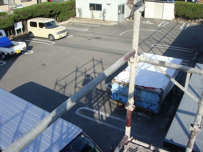 誰にもみつからない様に 足場の上に あがり(みつかったら