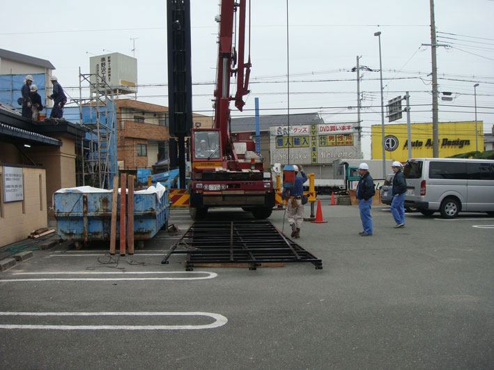 現場は進むので ありました このレッカーと職人さんが