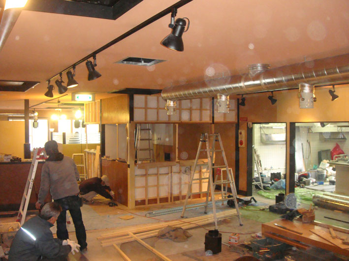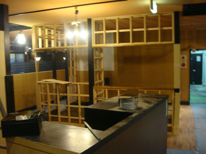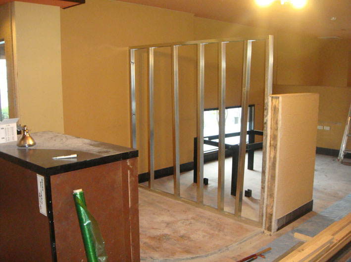 これは レジの後ろの 壁を作っているところです 軽鉄間仕切り