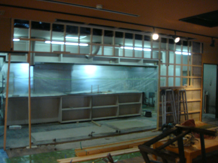 ぶち抜かれて 今度の店の オープンキッチンの下地ができて