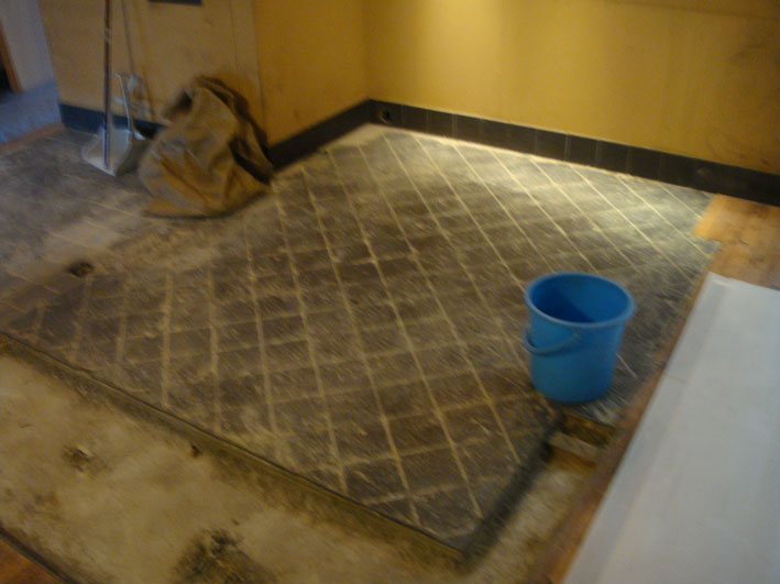 これが 既存 以前タイルが貼ってあった上に 床の長尺シートを