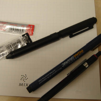 キイマ氏は図面を描くとき下書きに0.3のシャープを使い仕上げはハイテックを