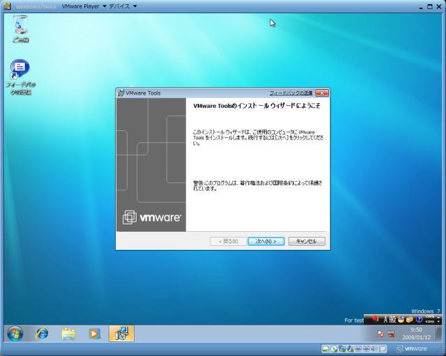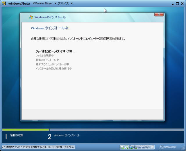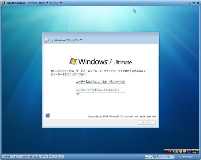 Windows7をVGC-RT90Sにインストール(VMware)出来なかったかので、自作PCインストールしてみました。