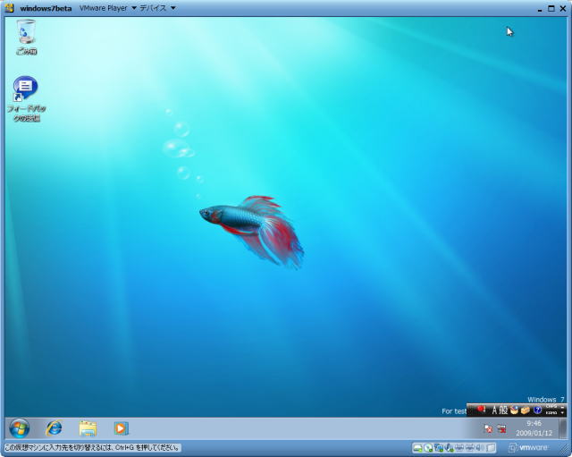 Windows7の見事起動しました。真ん中に金魚