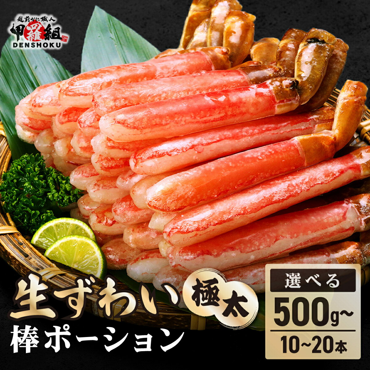 【ふるさと納税】1kgは27,000円〜【お刺身 OK】極太 生ずわい蟹 棒ポーション(殻剥き) 総重量500g~2.5kg (解凍後400g〜2kg) <最短3営業日以内発送・着日指定 可能>【甲羅組 海鮮 ずわい蟹 ズワイガニ 蟹 カニ 鍋 カニしゃぶ 刺身 ポーション お歳暮 お中元 ギフト 贈答】楽天市場${EVENT_LABEL_01_TEXT}
