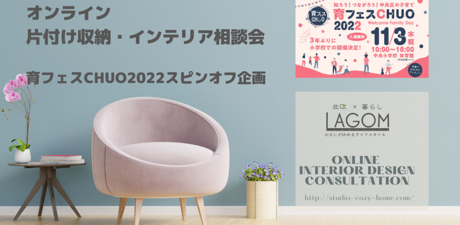 イベント特別協賛企画として期間限定(11月3日~5日)でオンライン片付け収納インテリア相談開催します。この3日間だけ特別価格にてご相談を承ります。