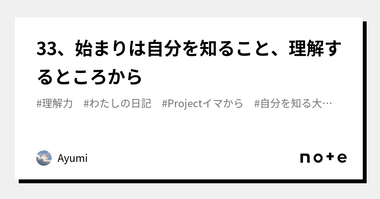 33、始まりは自分を知ること、理解するところから|Ayumi「自分を知る」の つぶやき投稿を始めて 1ヶ月程、経ちました 思っていた以上に 沢山のアクセスがあり 大変、嬉しく思っています 自分を知っていってみようかな? そんなシンプルな思いが芽生える きっかけとなれれば嬉しいです 自分を知る事で 理解力が増し 自分を愛せる様になり その愛し方で他者をも愛し 愛の視点から物事を捉え 判断出来る様になれた…note.com