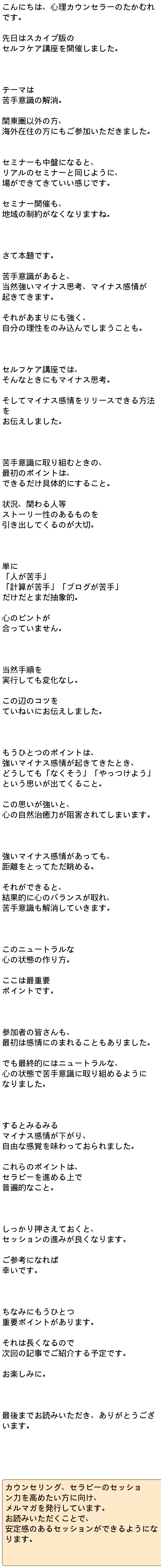 苦手意識を解消するときの重要ポイント | カウンセラー歴22年 長年クライエントさんから支持されてきた、たかむれ式カウンセラー養成講座