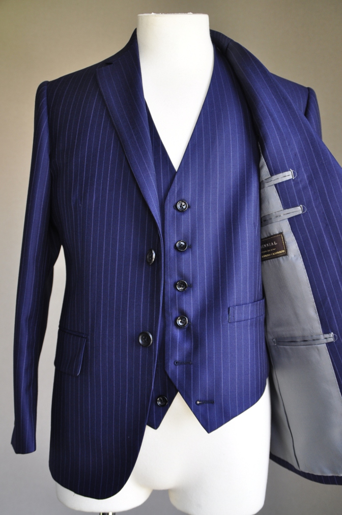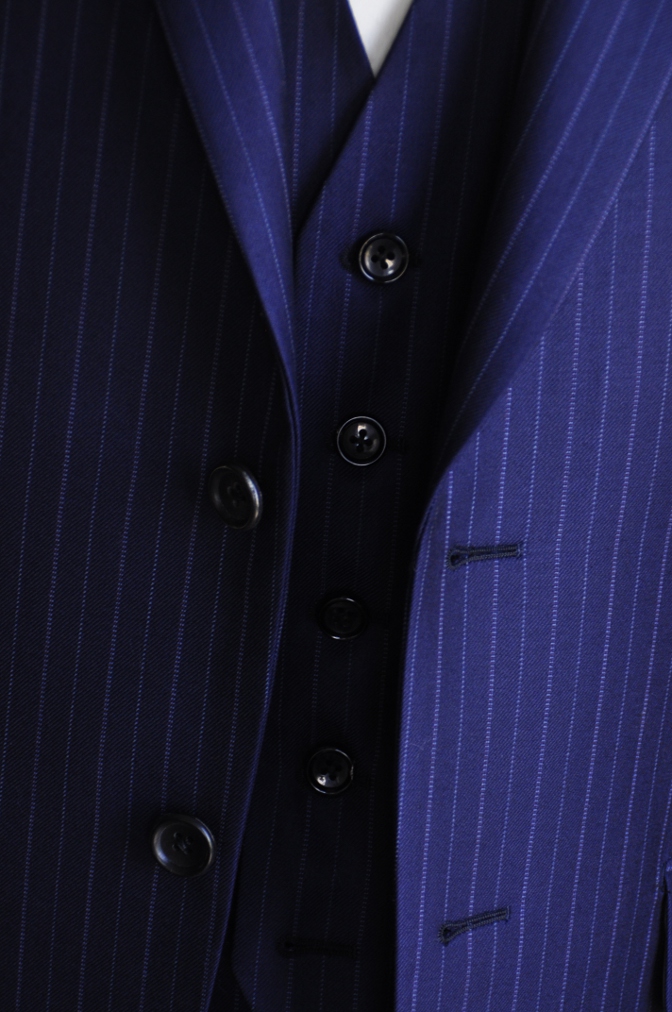 シングル2つボタンのスリーピースにてご注文いただきました。