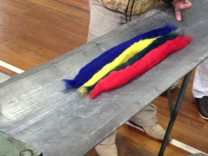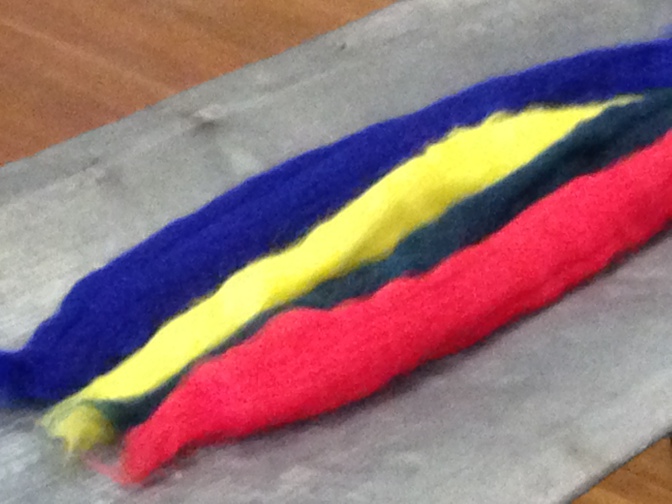 こんなイメージで糸の色は様々な色の原毛を混ぜて作り出すこともあるのです。