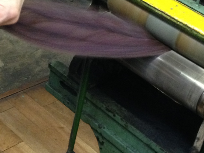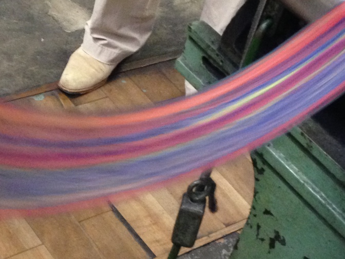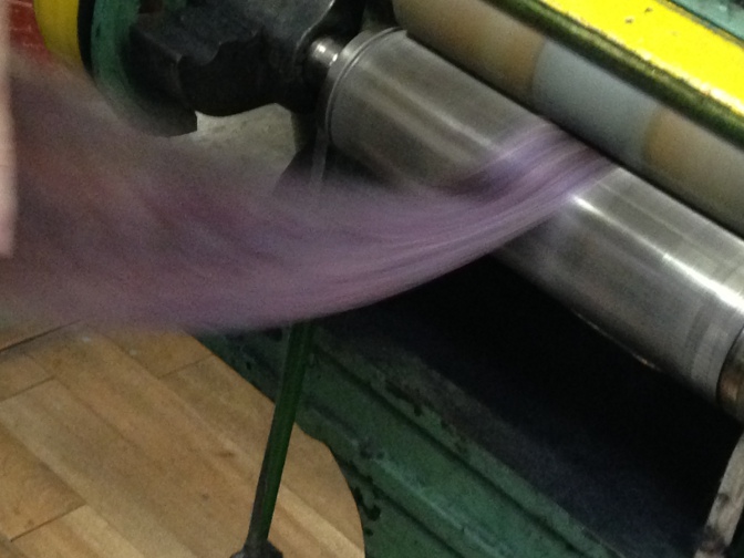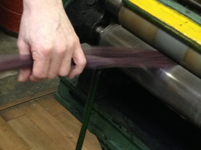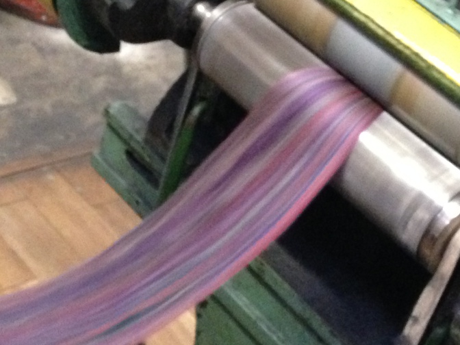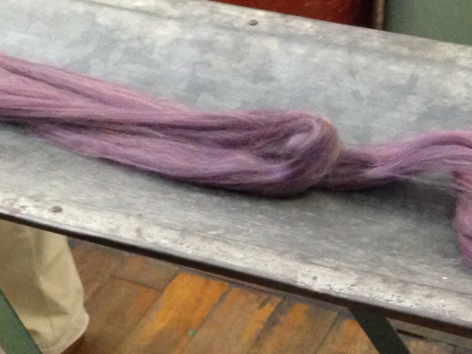 あんなにカラフルだった原毛が紫の糸に変身です。
