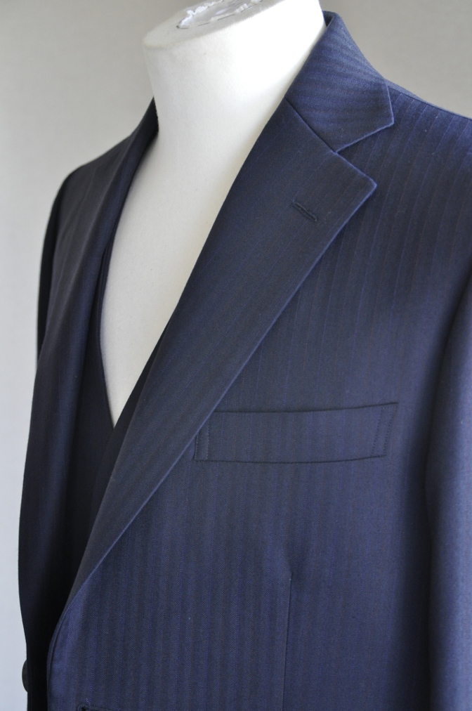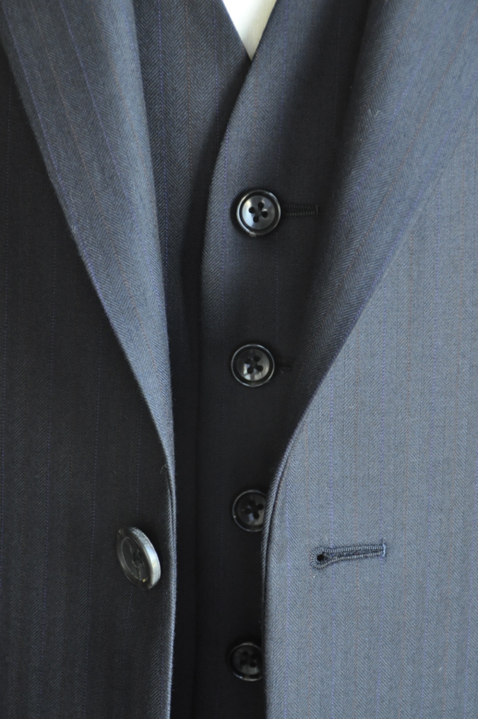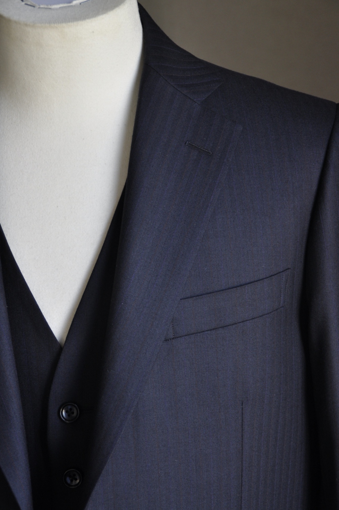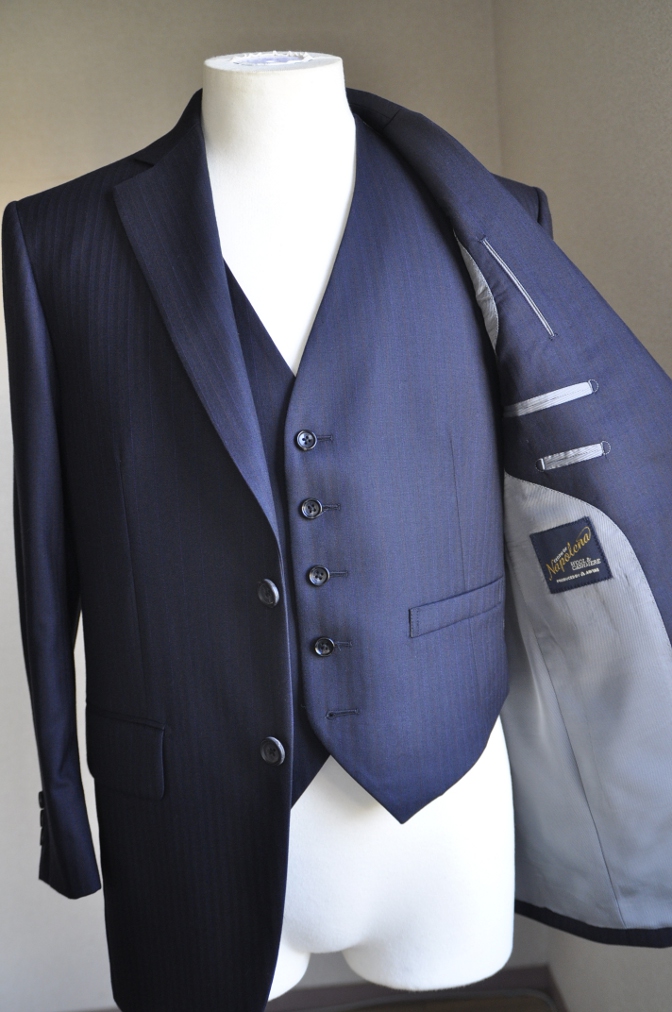 シングル2つボタンのスリーピースにてご注文いただきました。