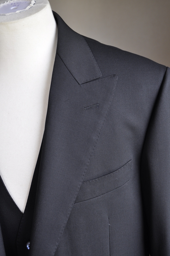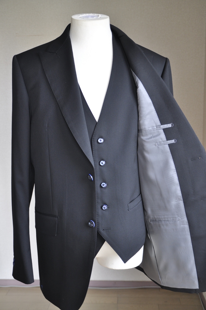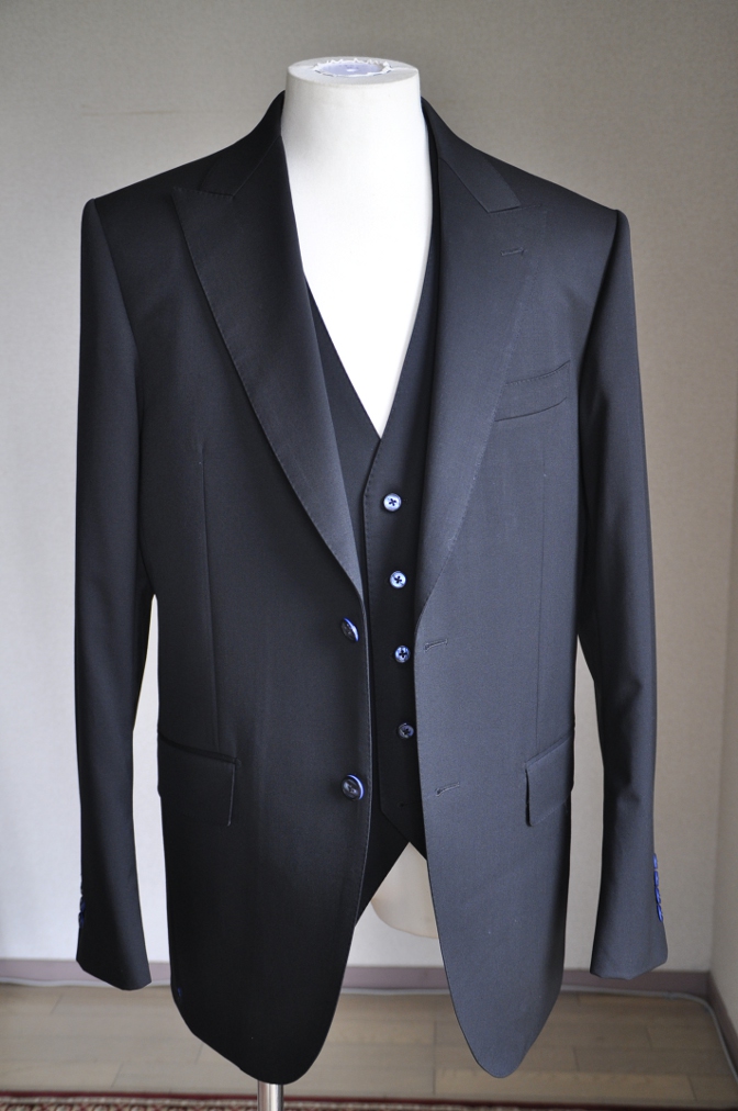 シングル2つボタンのスリーピースにてご注文いただきました。