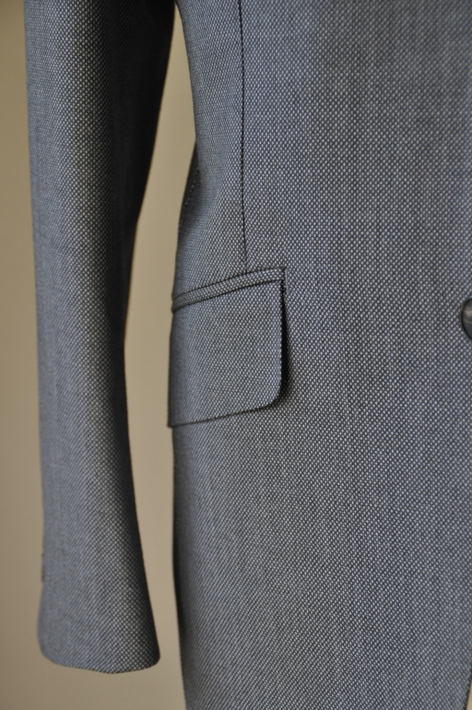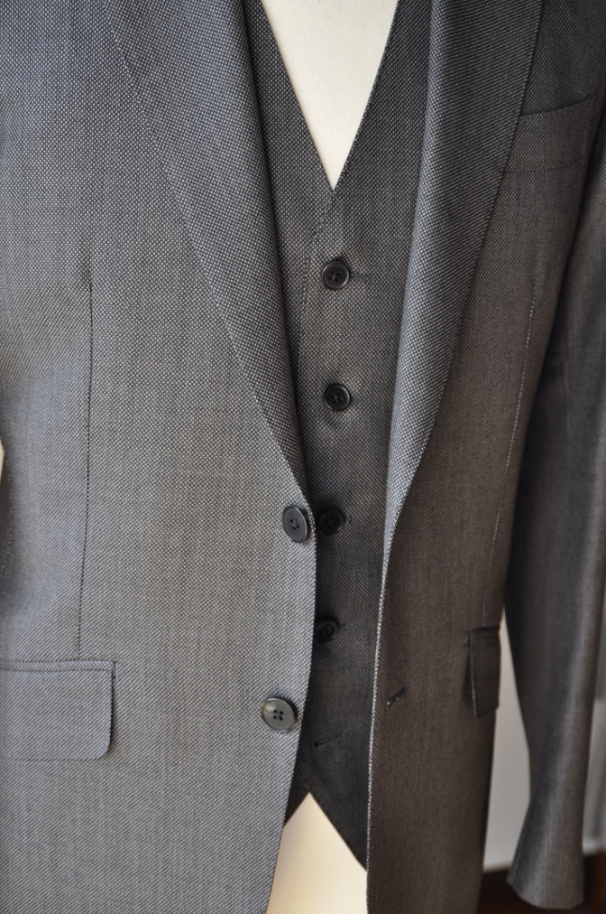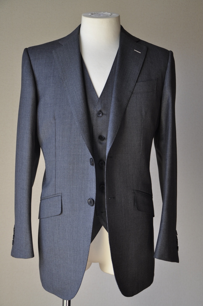シングル2つボタンのスリーピースにてご注文いただきました。