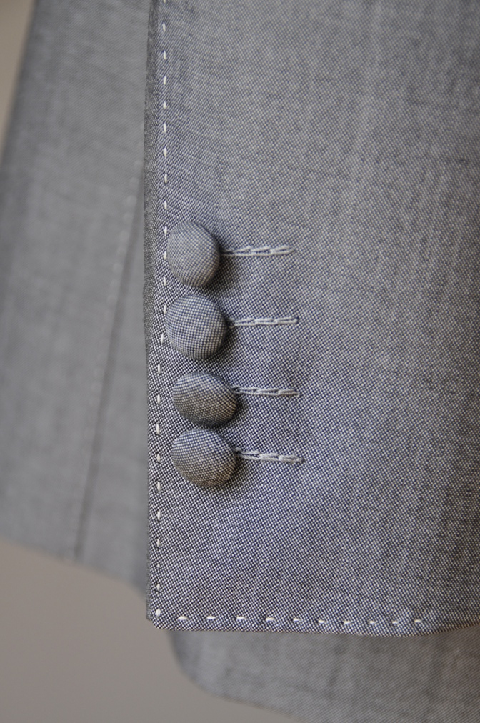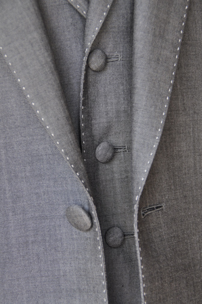 シングル2つボタンのスリーピースにてご注文いただきました。