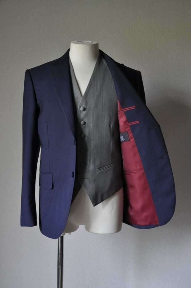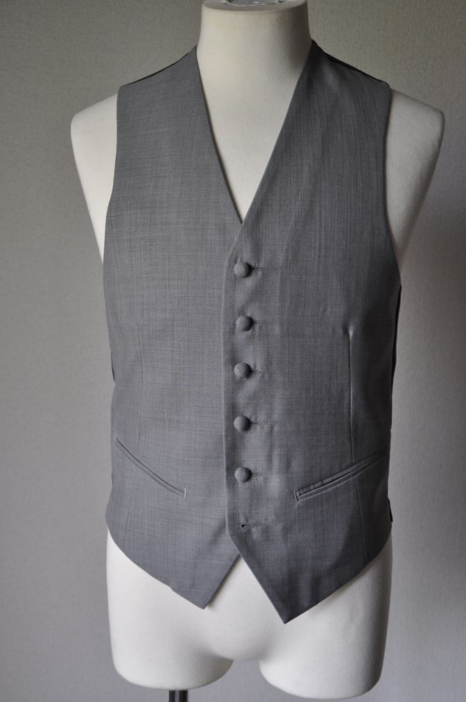 挙式後もボタンを付け替えスーツとして使えるようにとグレーのベストも合わせてご注文いただきました。