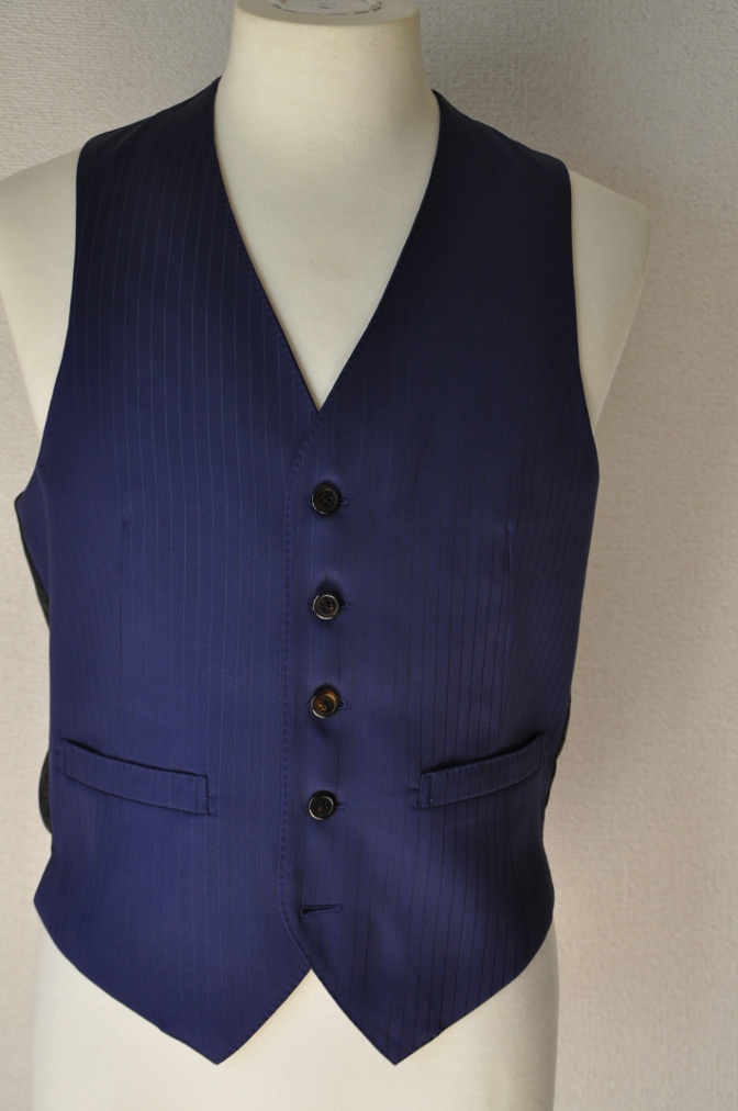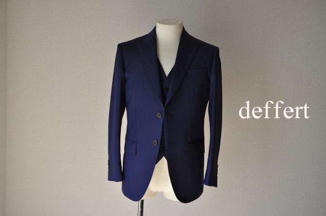 シングル2つボタンのスリーピースにてご注文いただきました。