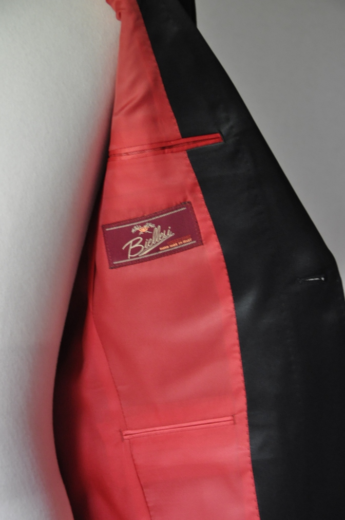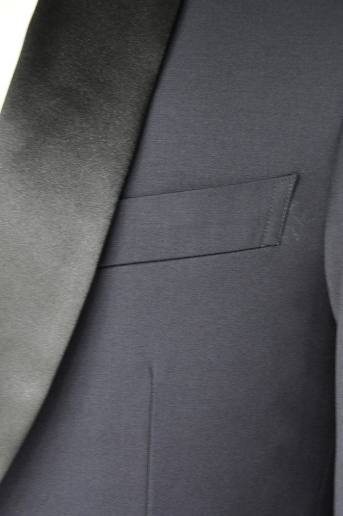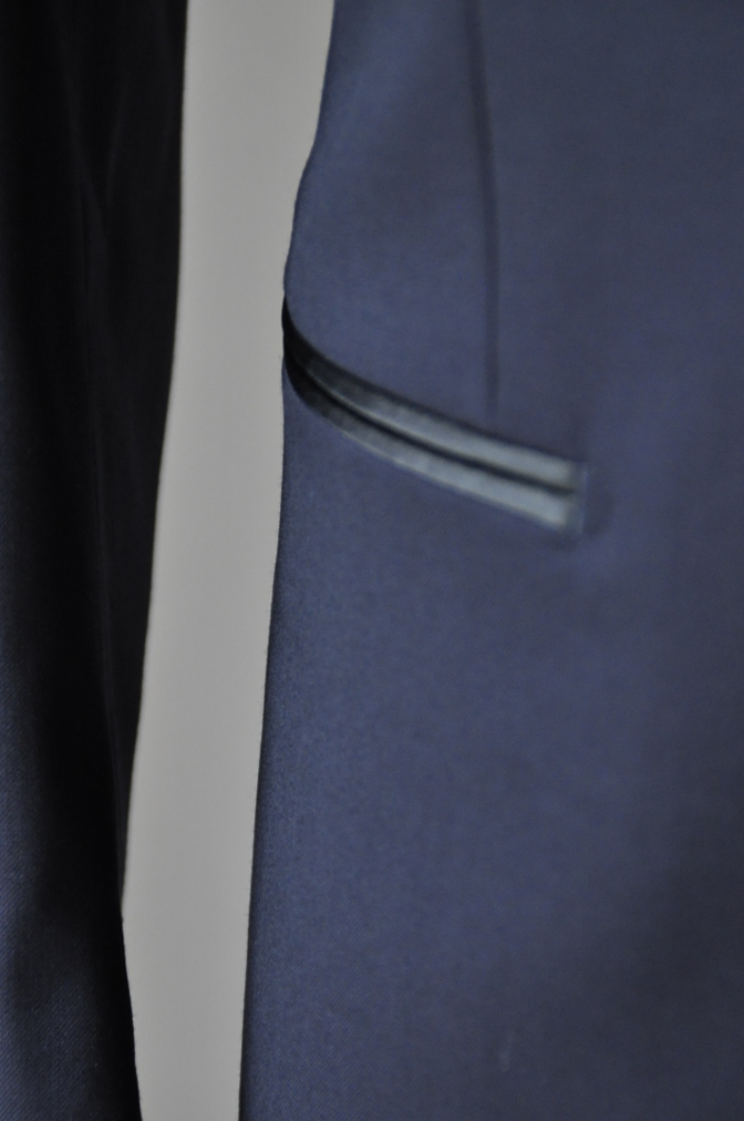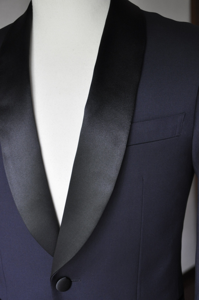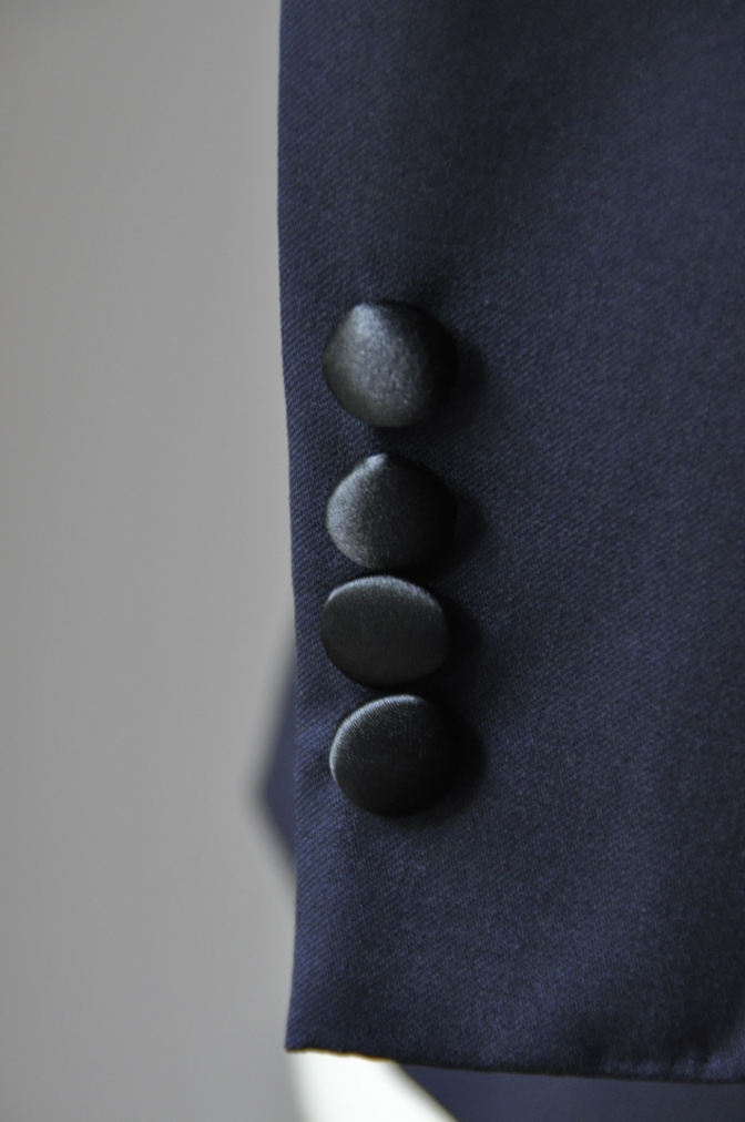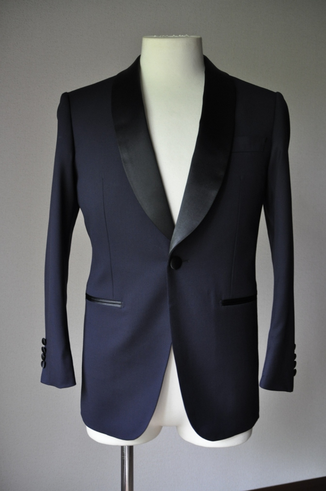 生地はBIELLESI 無地ネイビータキシードジャケットとチェックパンツとの組み合わせにてご注文いただきました。