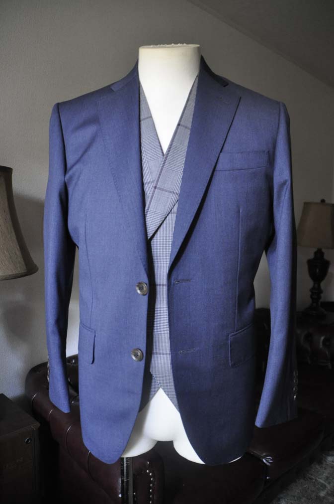 お客様のウエディング衣装の紹介-Biellesi ネイビースーツ グレーチェックベスト-