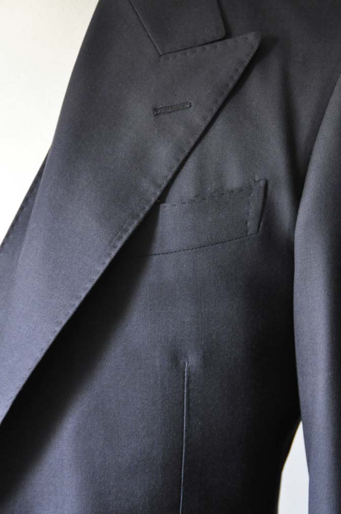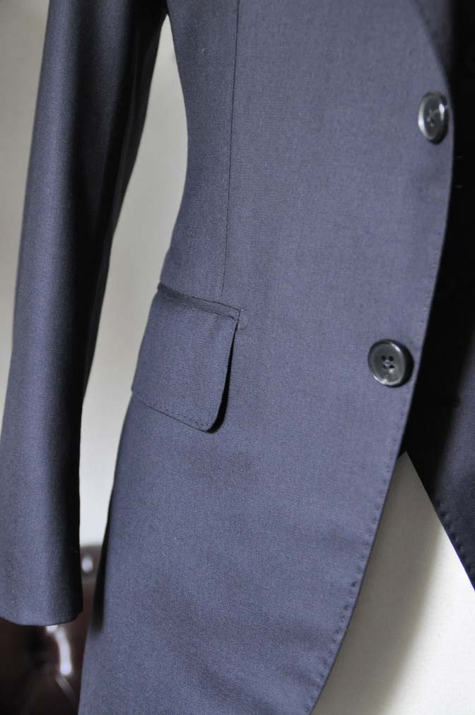 シングル2つボタンのスリーピースにてご注文いただきました。