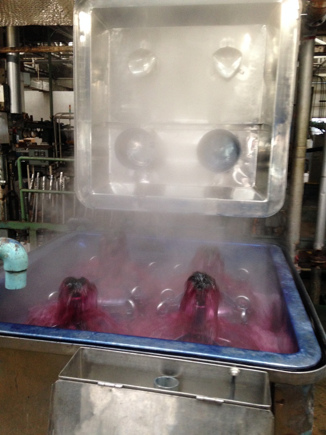 1.綿染めまたはトップダイド(トップ染め) 糸にする前のトップ(篠)の状態で染める