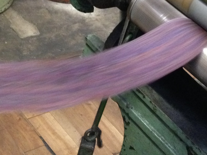複数の色で染められたトップを組み合わせて糸を作ります。