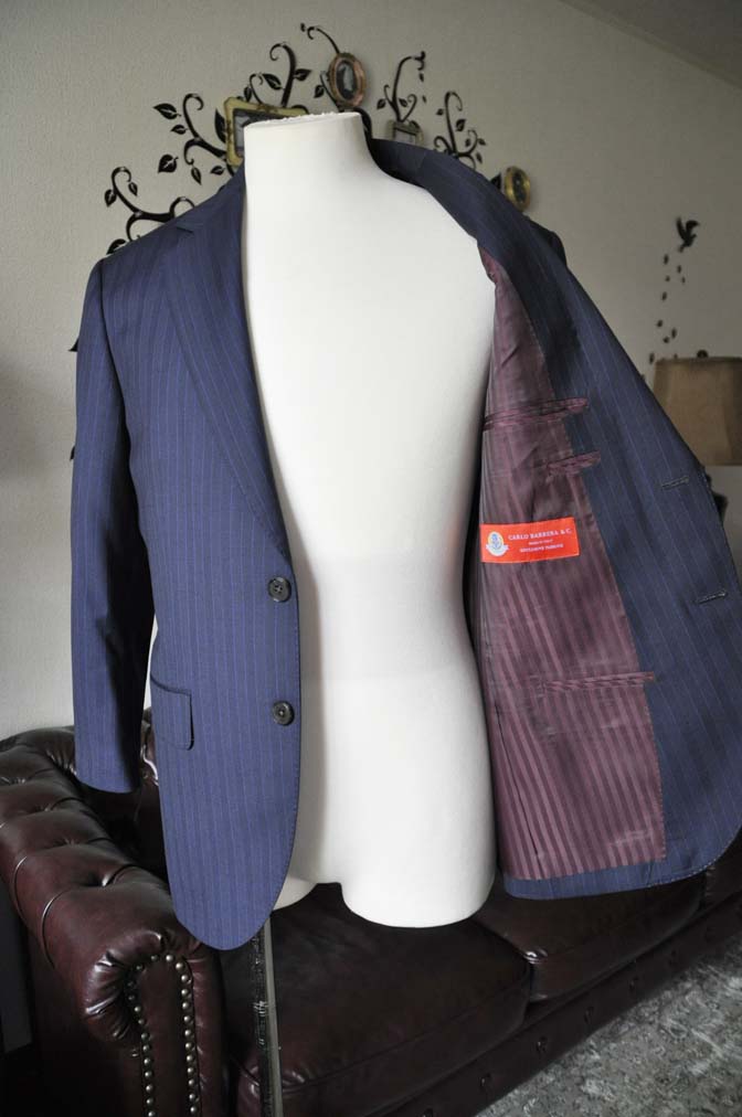 お客様のスーツの紹介-CARLO BARBERAネイビーストライプスーツ-