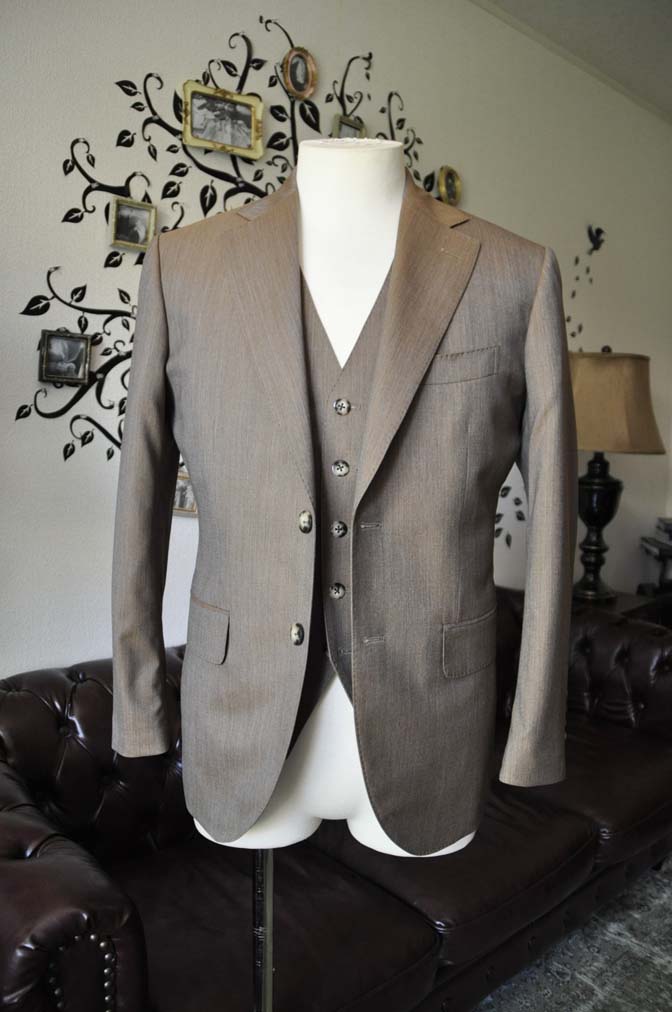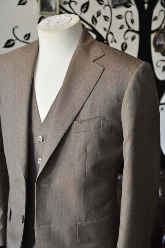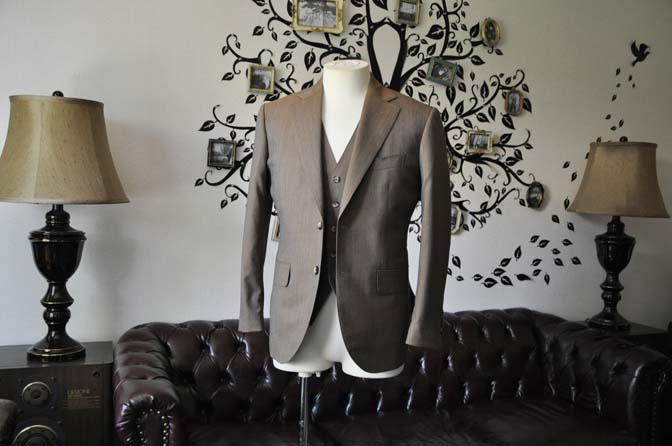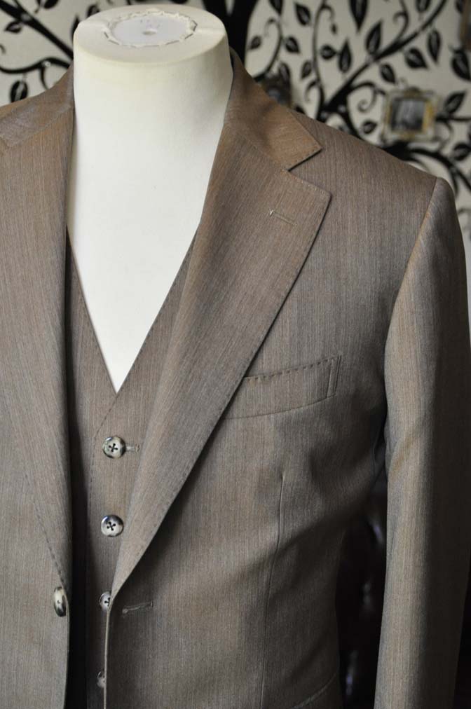 お客様のスーツの紹介-御幸毛織 無地ブラウンスリーピース-