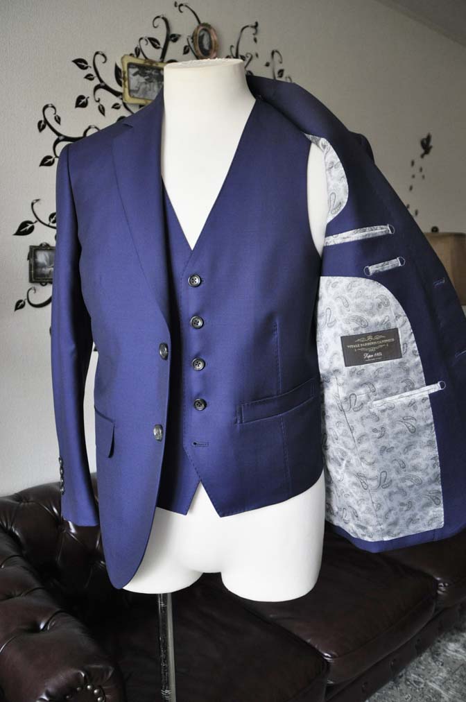 お客様のスーツの紹介-CANONICO 無地ネイビースリーピース-