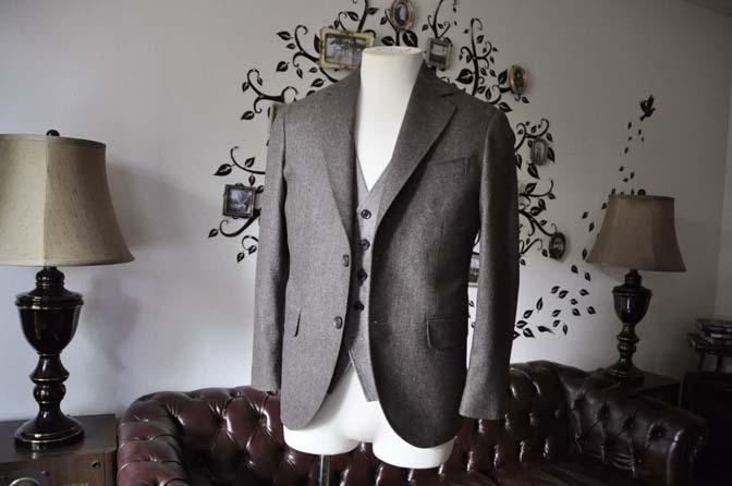 お客様のウエディング衣装の紹介- 御幸毛織 無地ブラウンフランネルジャケット ライトブラウンフランネルベスト-