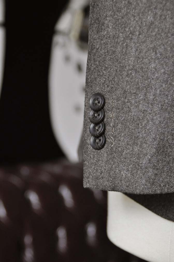 シングル2つボタンのジャケットと無地ライトブラウンフランネルのベスト、ホワイトコットンパンツのカジュアルなウエディング衣装としてご注文いただきました。