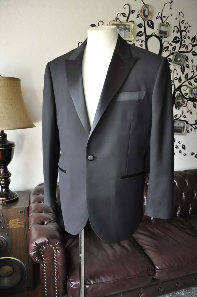 お客様のタキシードの紹介-Biellesiブラック ピークドラペルタキシード-