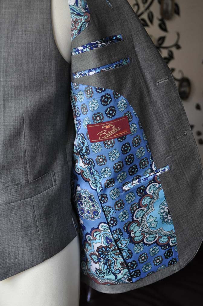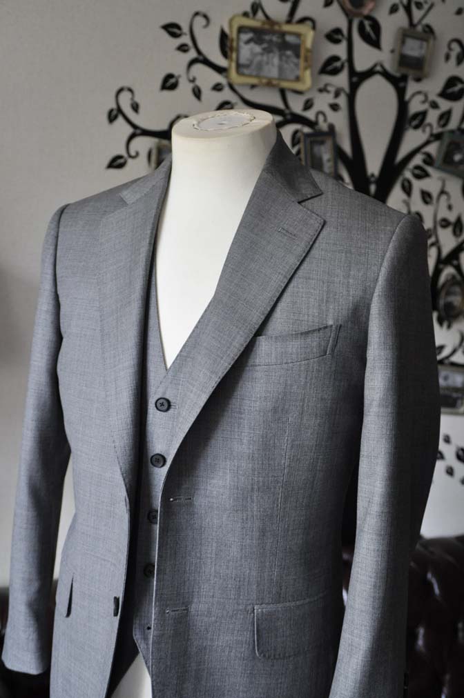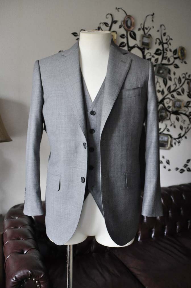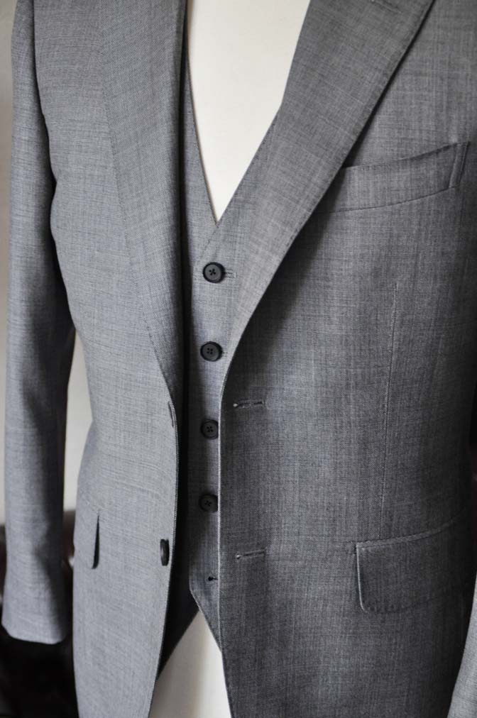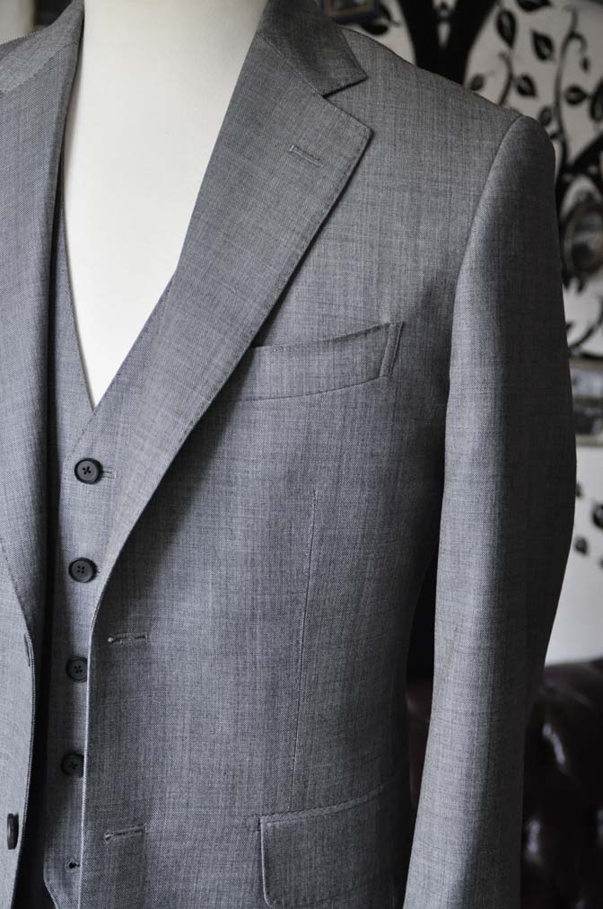 お客様のスーツの紹介-Biellesi無地グレー スリーピース-