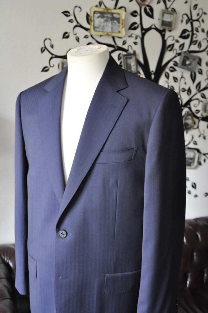 お客様のスーツの紹介-Biellesiネイビーヘリンボーンスーツ-