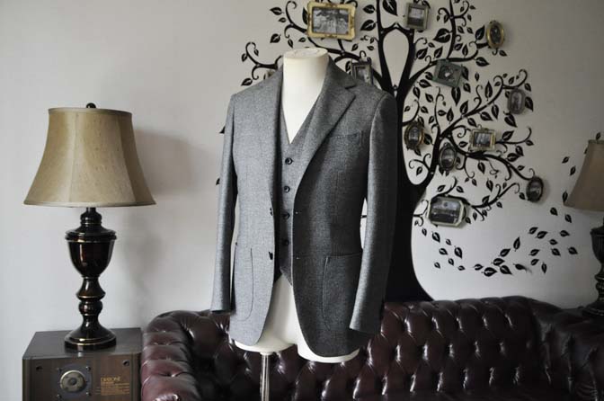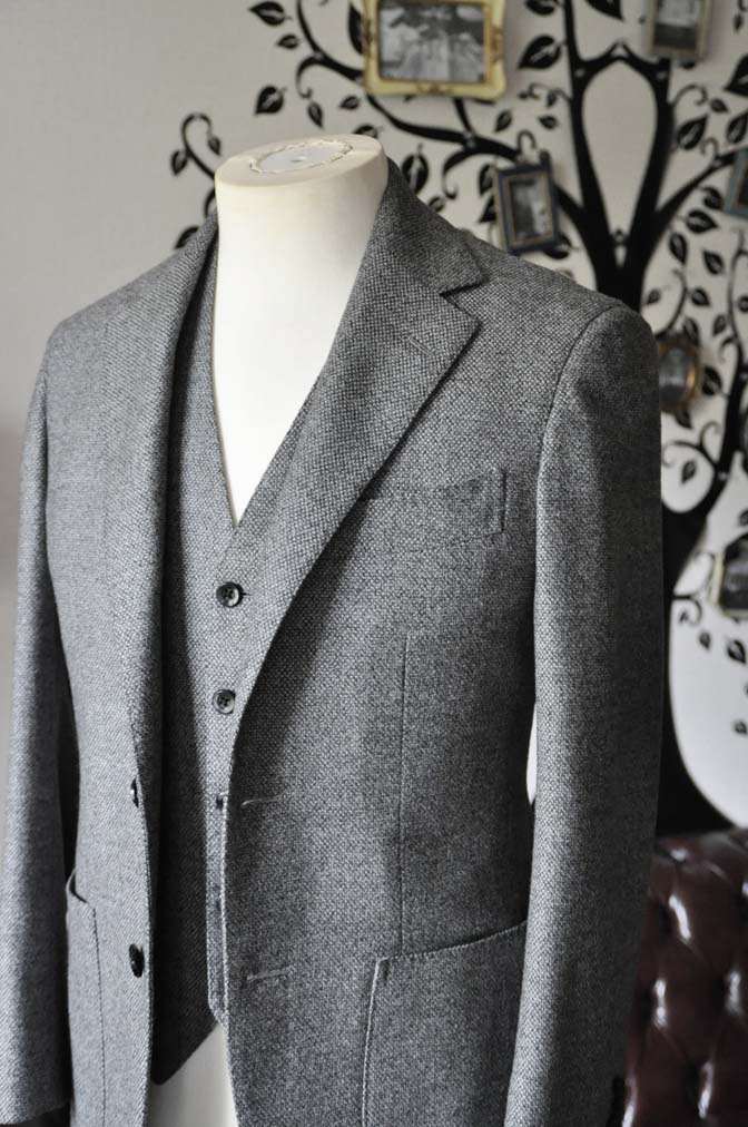 私のカジュアルスーツの紹介-Loro Piana 無地グレーフランネル スリーピース-