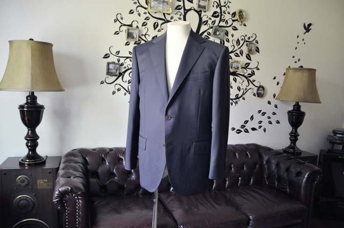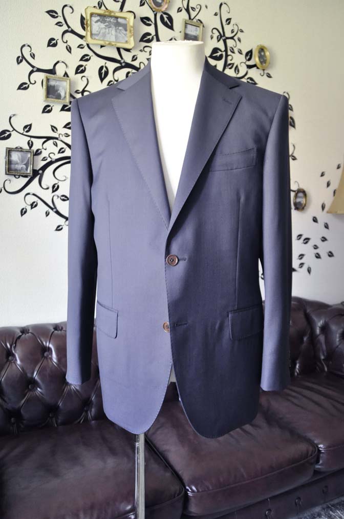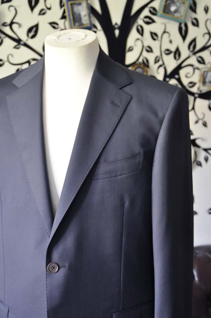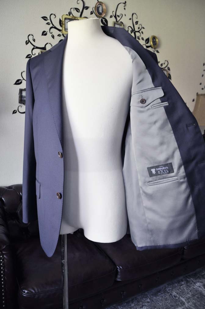お客様のスーツの紹介-DORMEUIL EXEL無地ネイビースーツ-