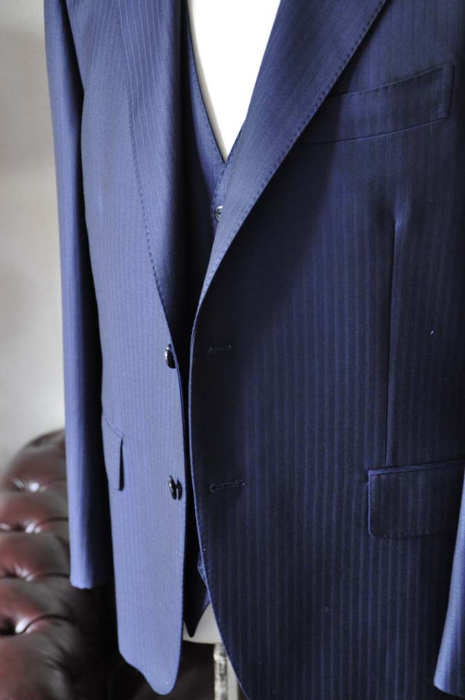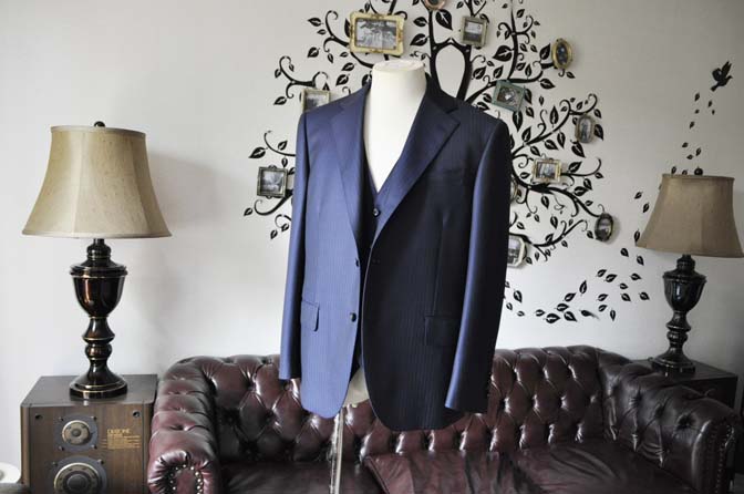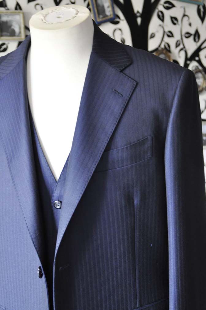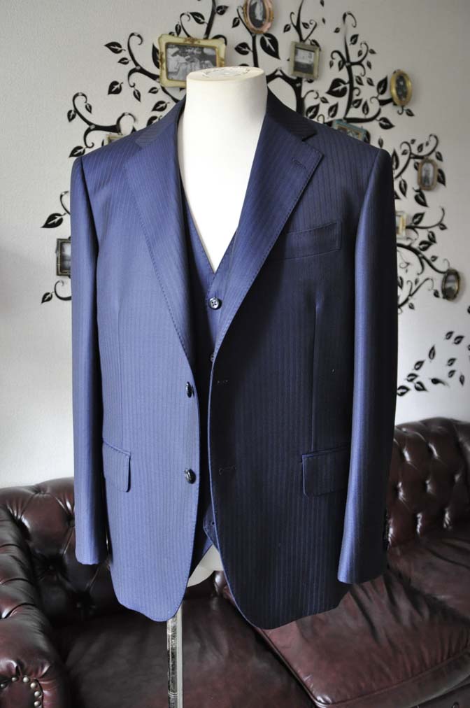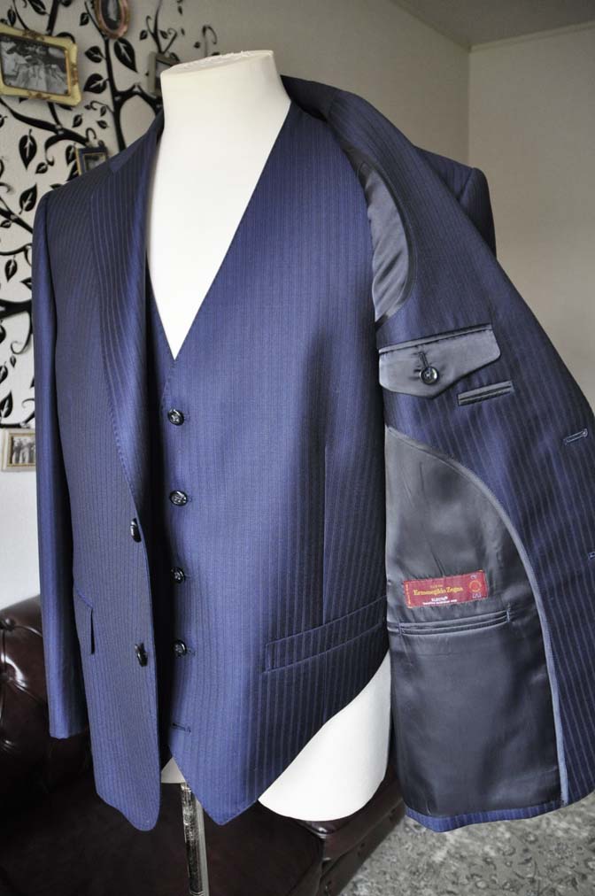 お客様のスーツの紹介-Ermenegild Zegnaネイビーストライプ スリーピース-