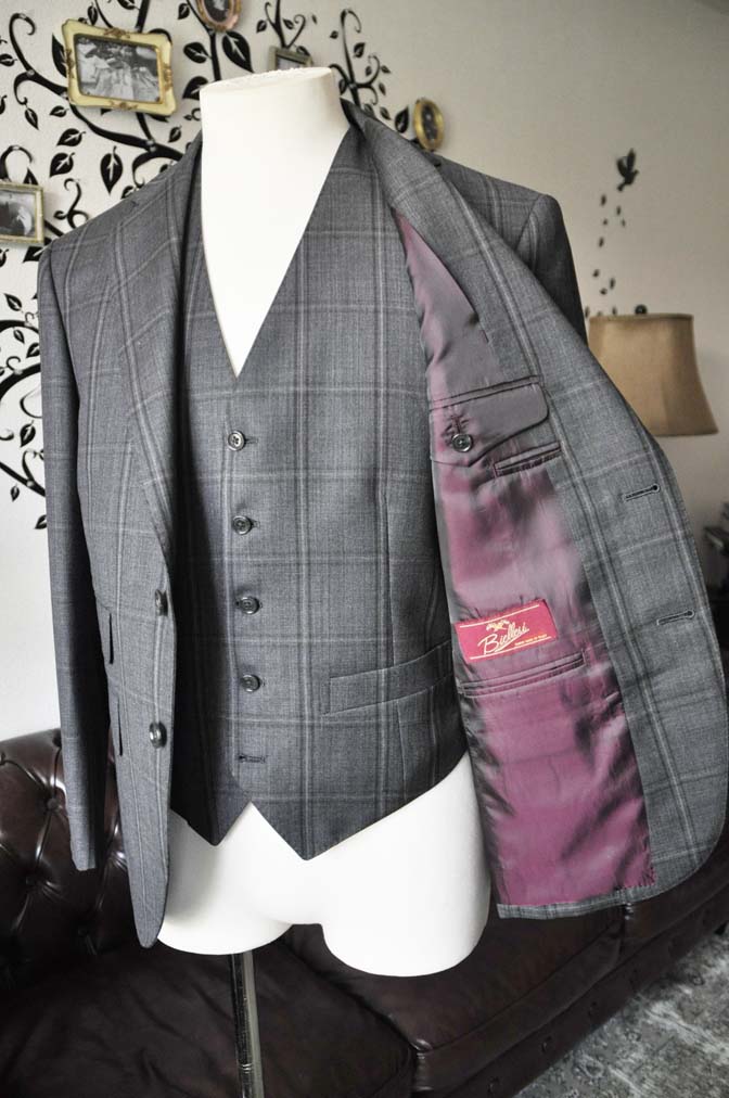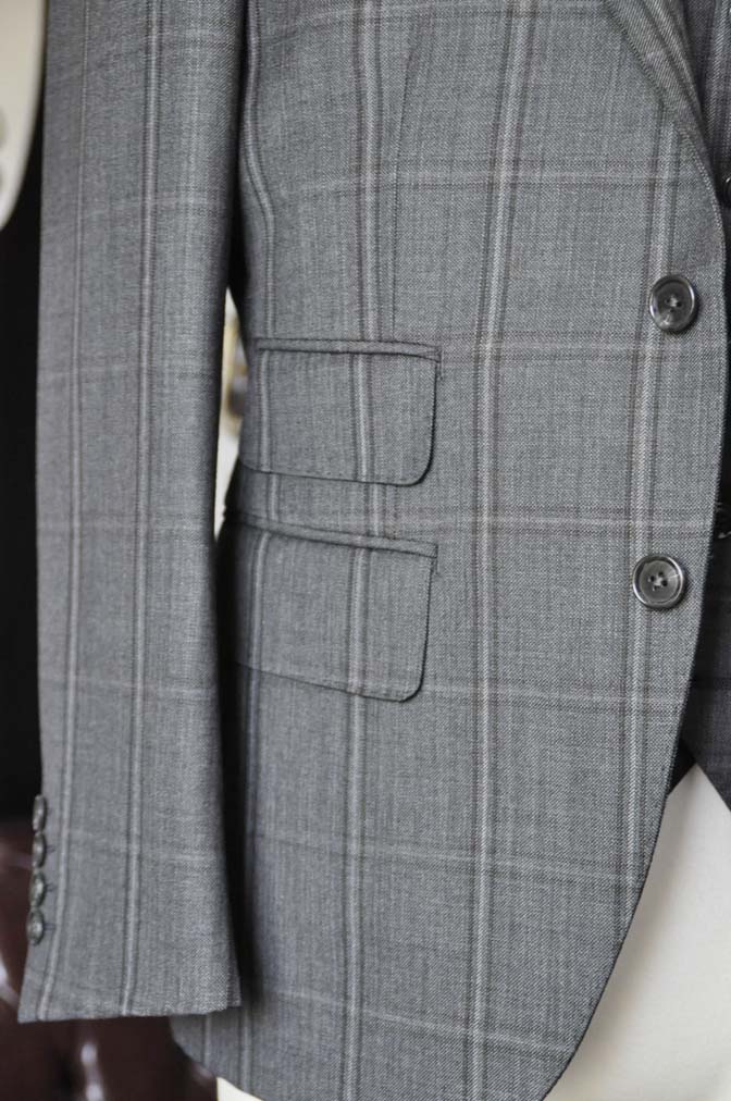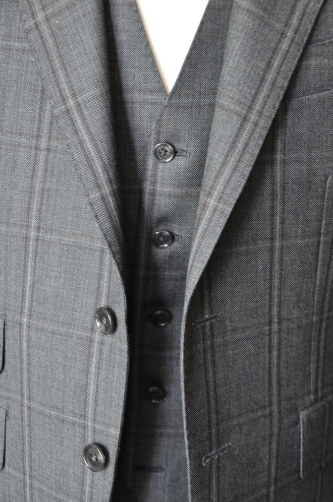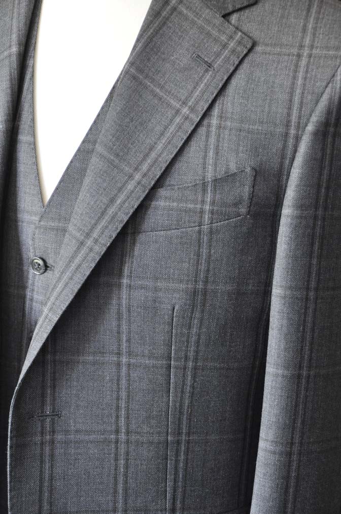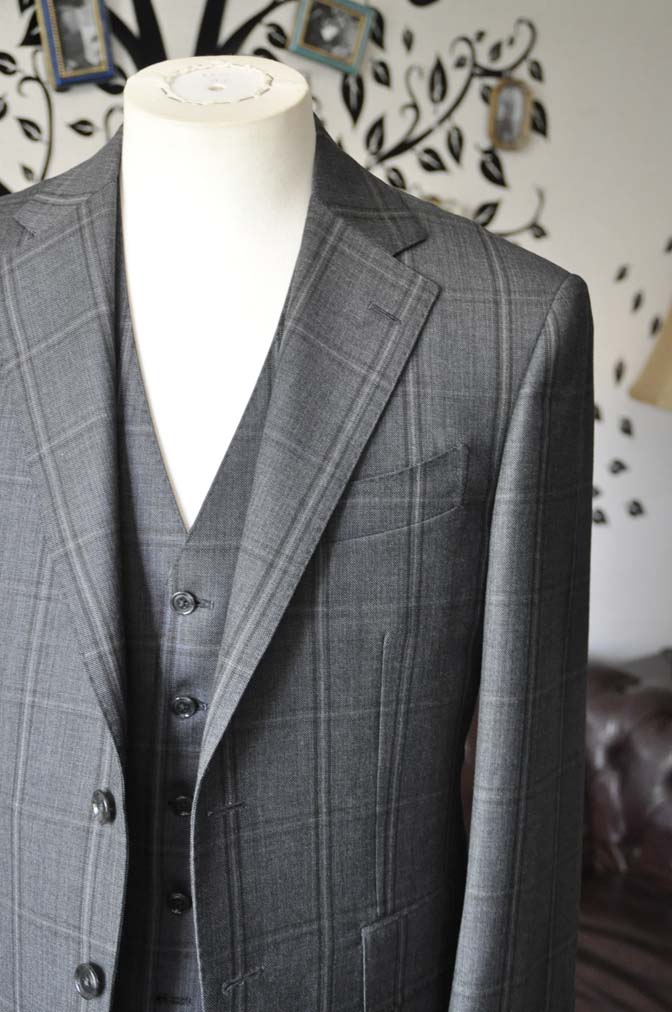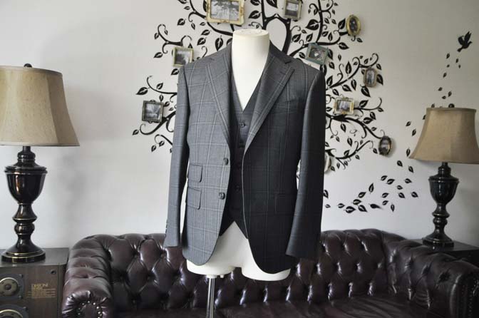 お客様のスーツの紹介-Biellesiグレーチェックスリーピース-