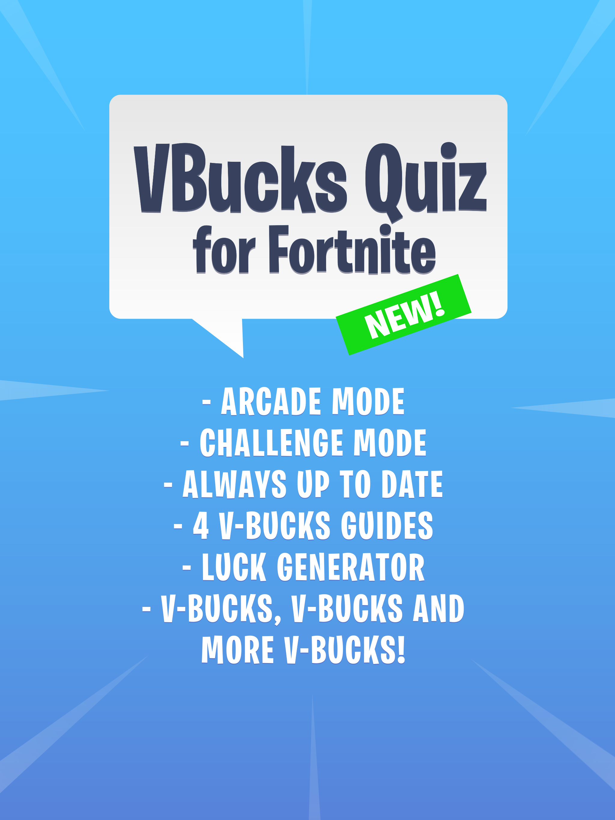 Can you answer the questions of the Fortnite V-Bucks Quiz correctly? Can you answer the questions of the Fortnite V-Bucks Quiz correctly? Test your knowledge on this gaming quiz to see how you do and compare your score to others. Quiz by purplebutterfly.